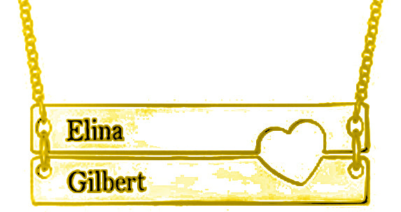 Couple Flat Horizontal Bar Necklace with Heart